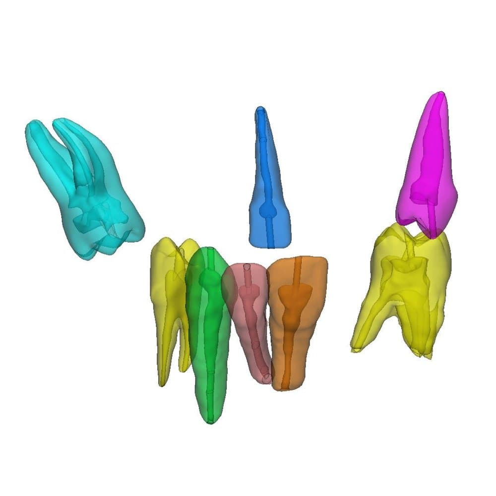 Modèles numériques de dents créés à partir d'images tomographiques (CT).