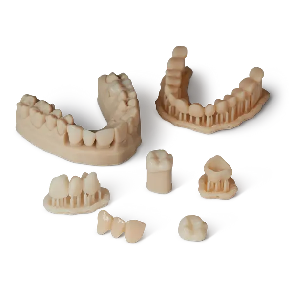 La résine d'impression 3D la plus polyvalente pour les prothèses dentaires et le premier matériau indiqué pour les bridges permanents, permettant de fabriquer des restaurations durables et esthétiques le jour même.