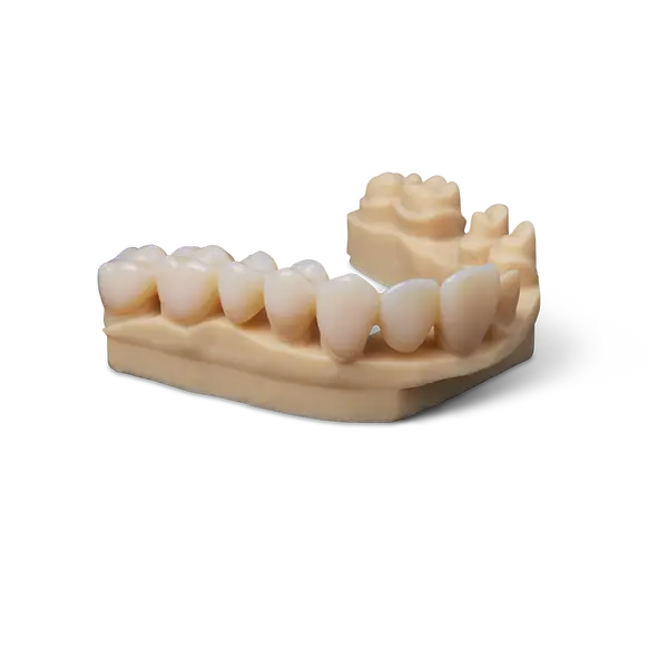 Premium Teeth Resin offre aux professionnels de la dentisterie un matériau solide, résistant à l'usure et d'une esthétique naturelle pour l'impression 3D de dents de prothèses complètes et de restaurations provisoires d'arcades complètes sur implants (All-on-X), de restaurations provisoires unitaires (couronnes, inlays, onlays et facettes) et des bridges comptant jusqu'à sept dents.