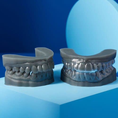 A high-quality 3D printed model is essential for manufacturing clear aligners. The smooth surface finish of models printed on Formlabs SLA 3D printers makes it possible to produce truly transparent aligners without any visible layer lines.