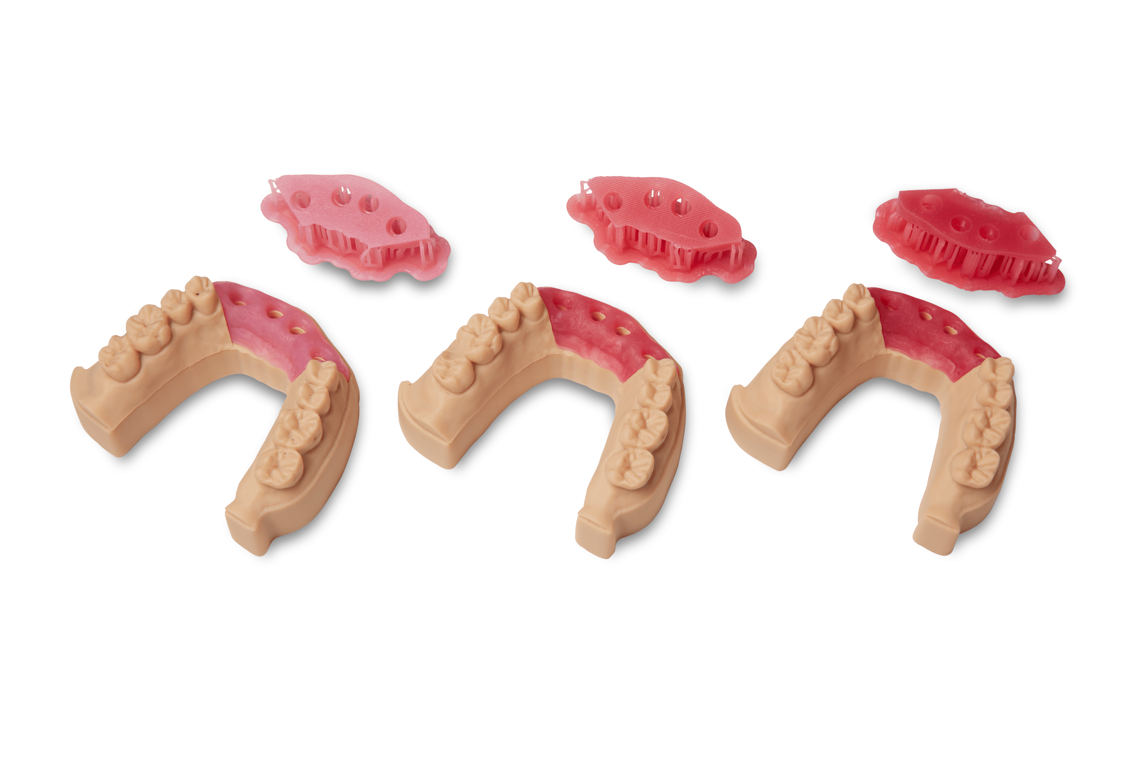 Soft Tissue Starter Pack enables you to create your own Soft Tissue Resin in customizable dark, medium, and light pink shades to 3D print flexible gingiva masks for use in combination with rigid dental models to confidently check implant prosthetics by adding removable soft tissue components to your model production.