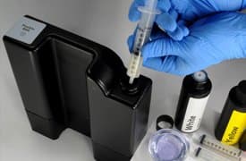 Replace the cap on the cartridge and shake the cartridge vigorously for 5 minutes, rotating occasionally.