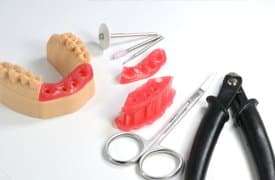 If any rough marks are left on the surface of the 3D printed gingiva mask after support removal, smooth down the support surfaces with a medium grit wheel or carbide rotary and handpiece to improve appearance and finish.