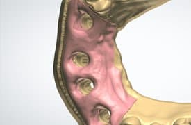 Dental design software requires a digital impression of the patient’s implant using a scan flag or body in order to design an implant model with a gingiva mask. To acquire this data, scan the patient directly with a 3D intraoral scanner.