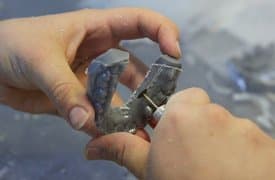 Rough cut the appliance with a cutting disc directly on the model using a low speed rotary wheel.