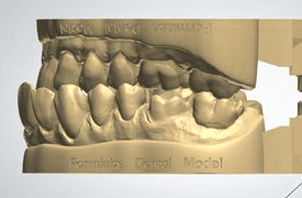 Una volta ottenuta l'impronta digitale, importa i dati della scansione in un software CAD dentale per rifinire la scansione, costruire la base e, se necessario, rimuovere i bracket. Assicurati di usare software CAD dentale che permetta l'esportazione di file STL e sia quindi compatibile con PreForm, il software usato per preparare la stampa 3D.