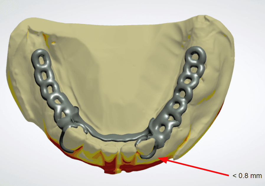 Controlla sempre il margine e l’aspetto interno della protesi per confermare che i supporti non sono stati generati in quelle aree critiche. Se sono necessari degli altri supporti, aggiungili manualmente dove appropriato.